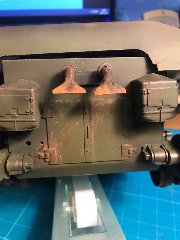 Nu börjar meckandet med tekniken. Där finns inga fästen för motorn till tornet. 120928192_4806511932707235_6698115803880972392_n.jpg kanonröret var pluggat med diverse hinder fick borra ur det. Svårt med en äldre överdel till en ny teknik. Men det är väl det som är skoj lite utmaningar. Saknar delar...
