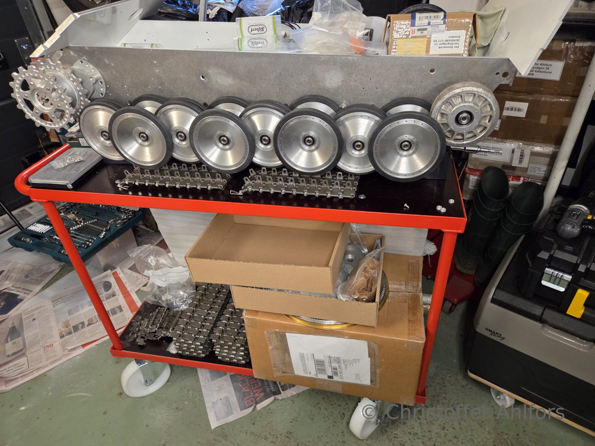 Bra idé. Jag har bilmotorer på Verktygsbodens hjuldollys och de rullar lätt. Dock är de bara ca 7 cm höga. Bra att flytta runt ett par 1/6 vagnar.