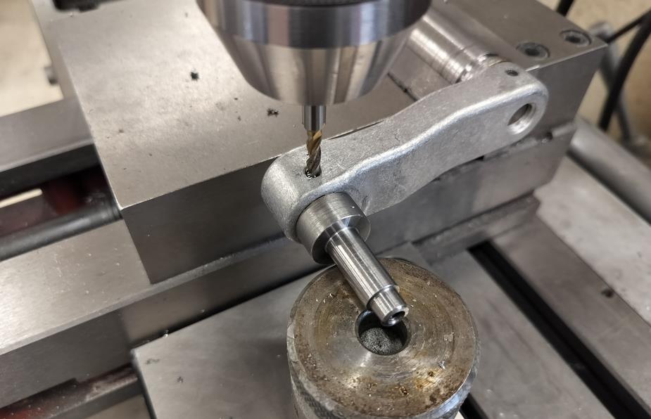 Jag borrade hålen i pendelaxlarna djupare och med nya stoppskruvshål. Det blev även o-ringspår i båda ändarna så att smuts inte kommer in och smörjfett inte kommer ut.