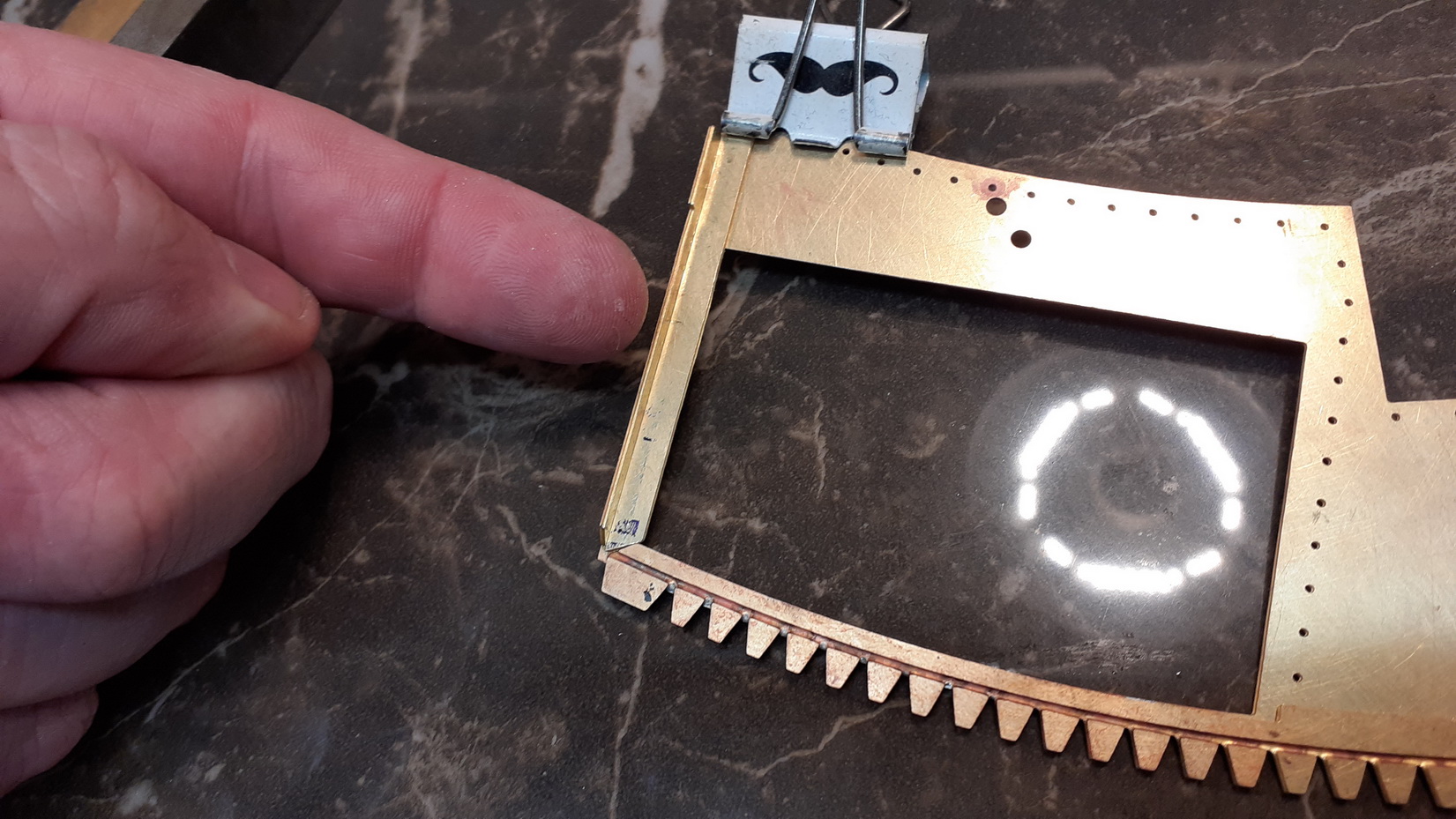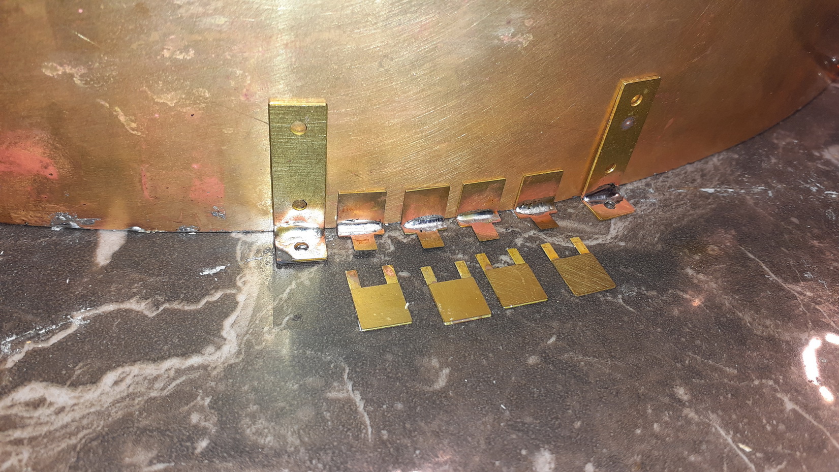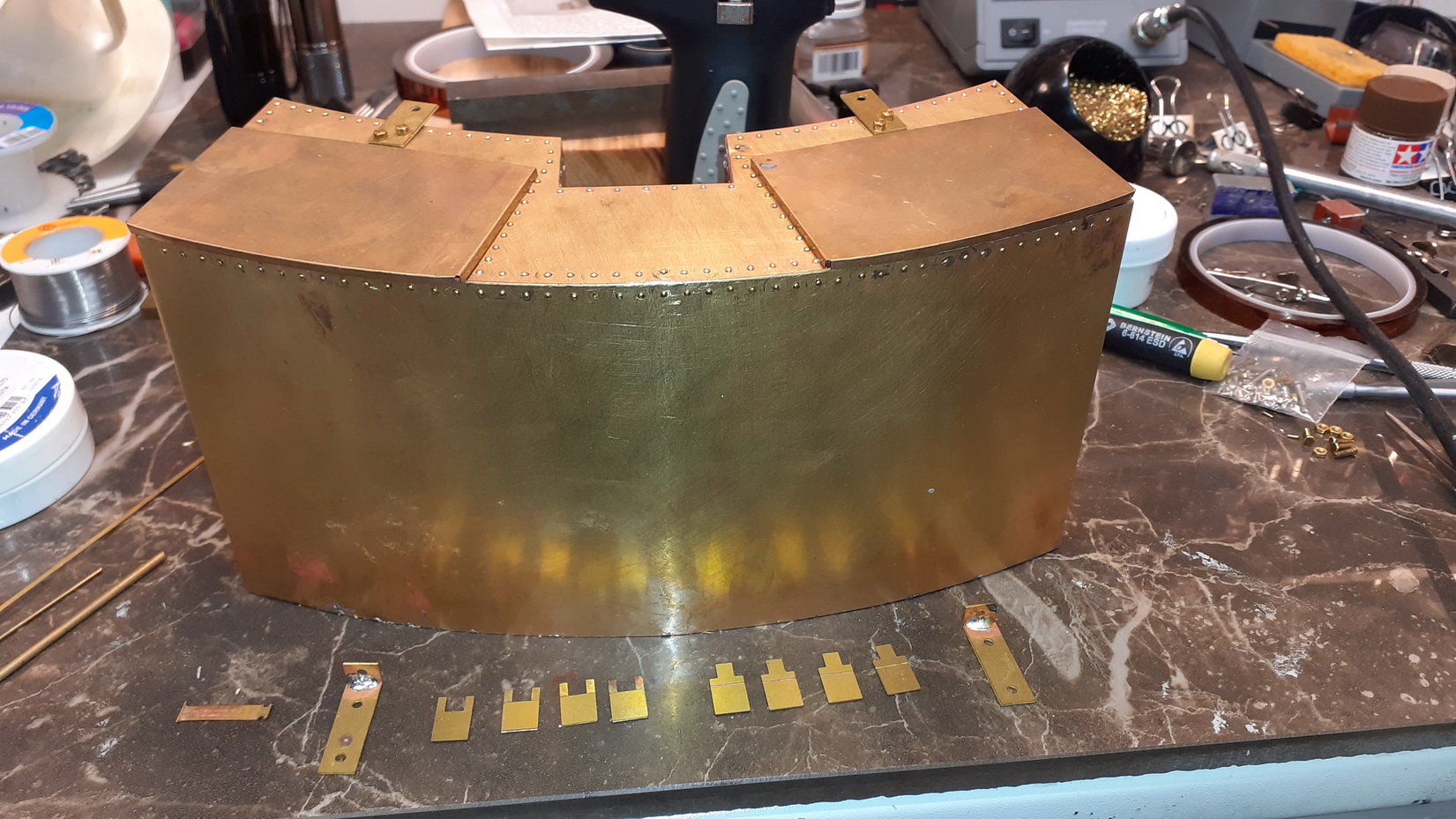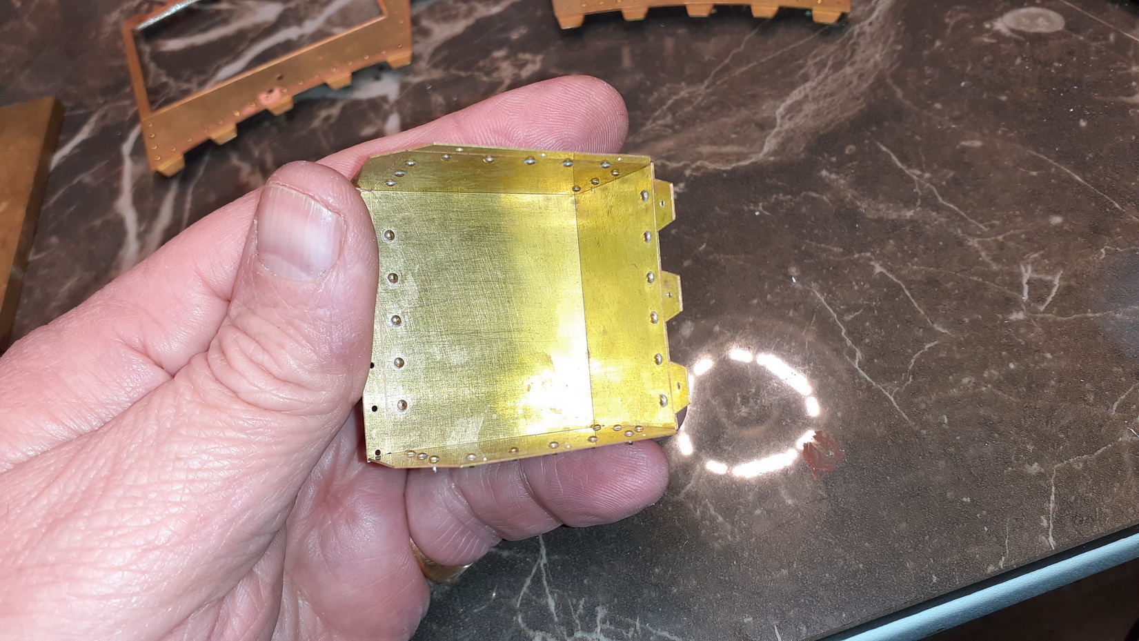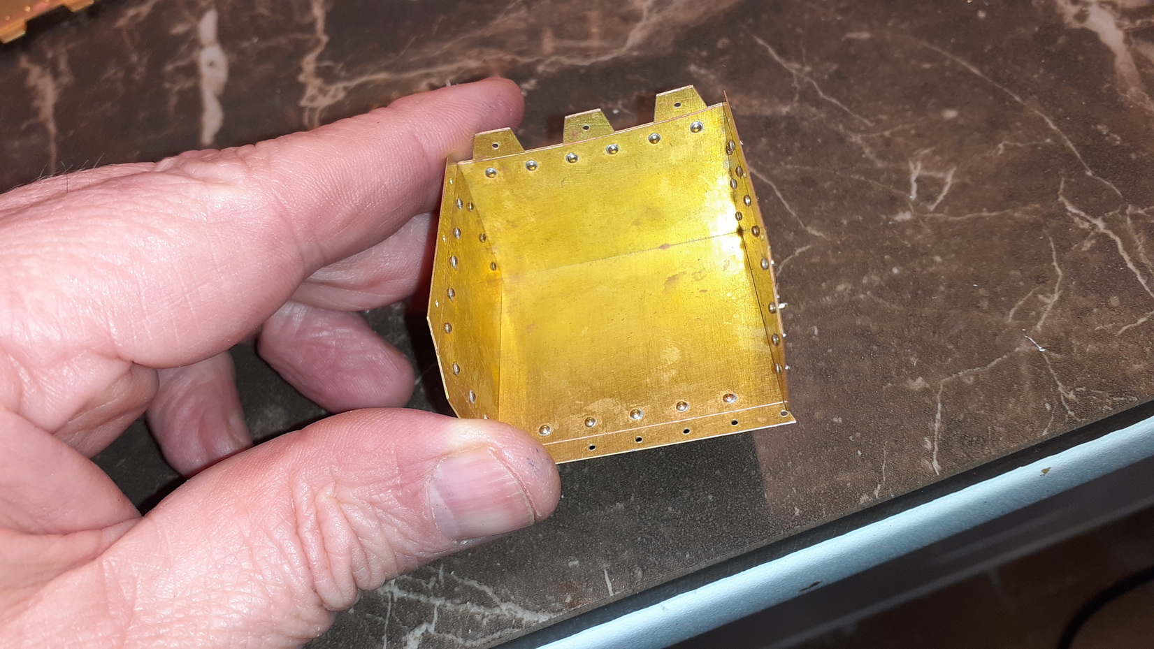 Jösses va många o små nitar det är på denna, varje nit bankas på baksidan och löds fast.