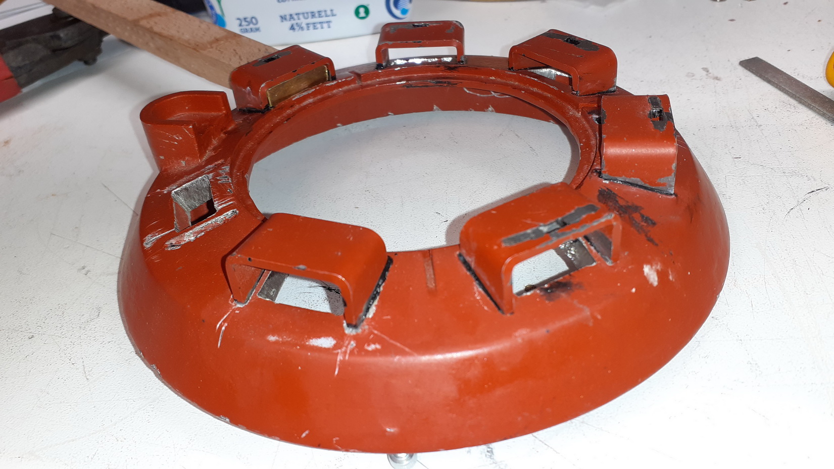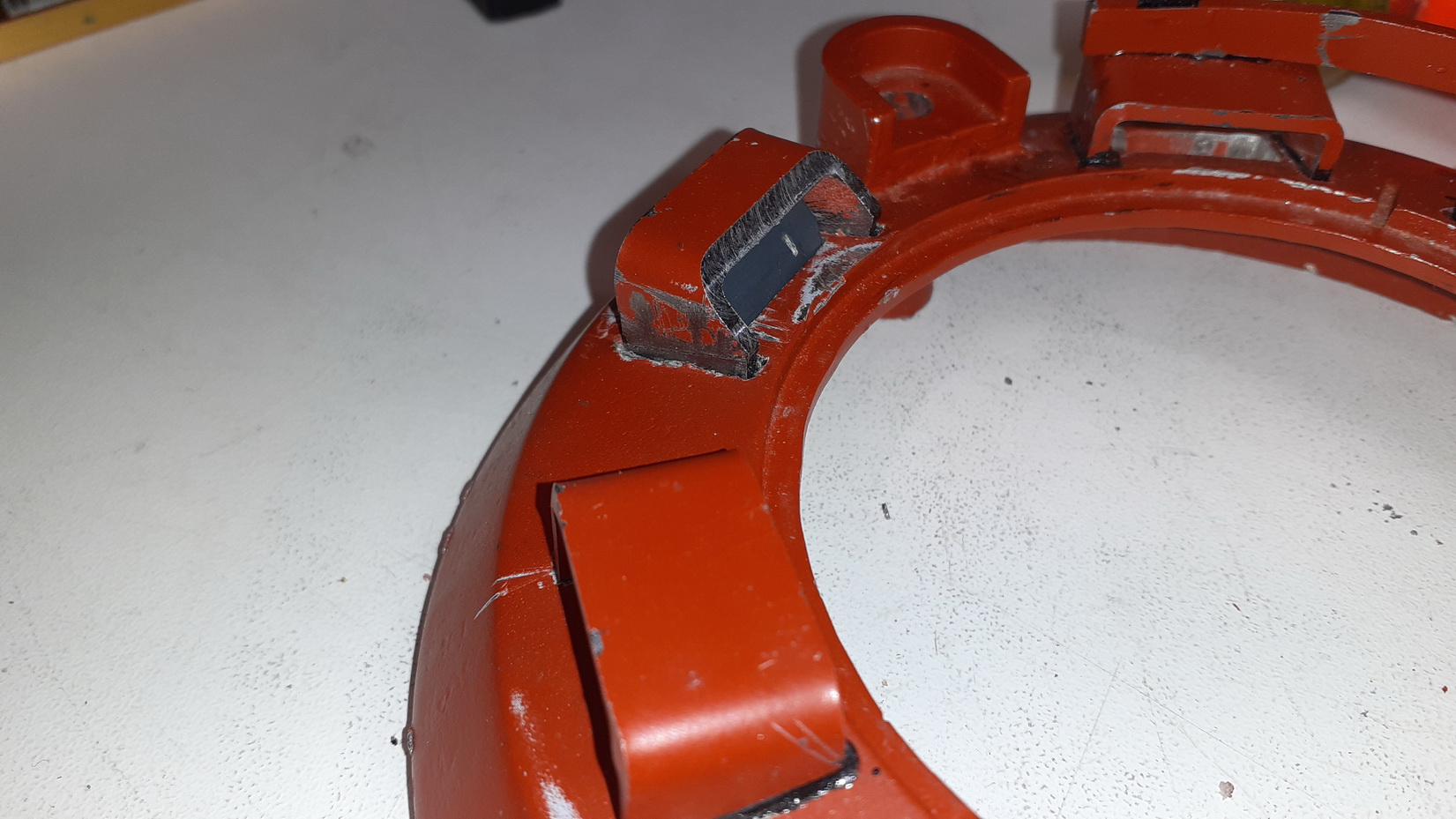 Filat och slipat till skydden ovanför periskopen.