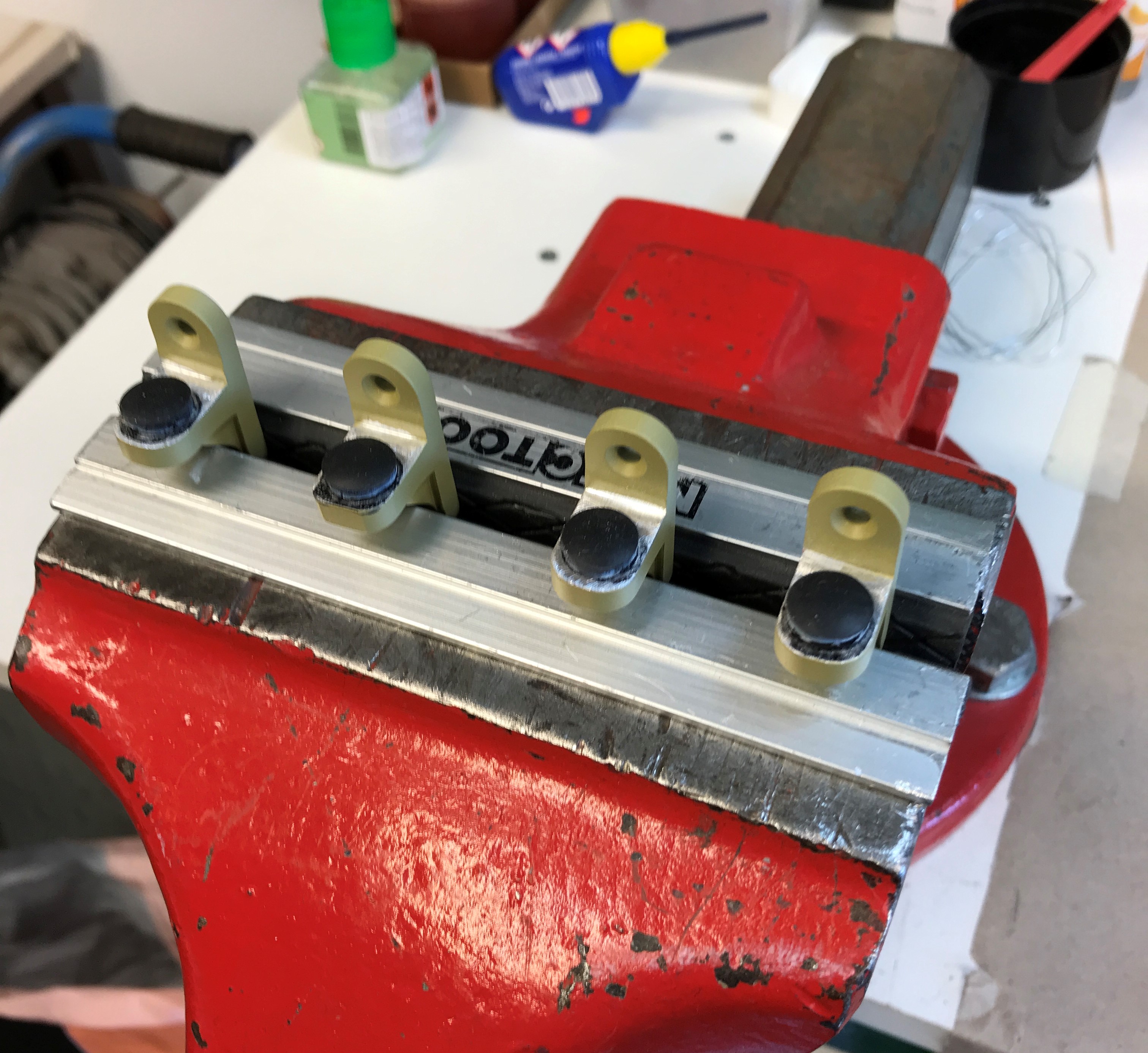 Idag blev det till att ta tag i dämp kuddar för dom främre/bakre bärarmarna .