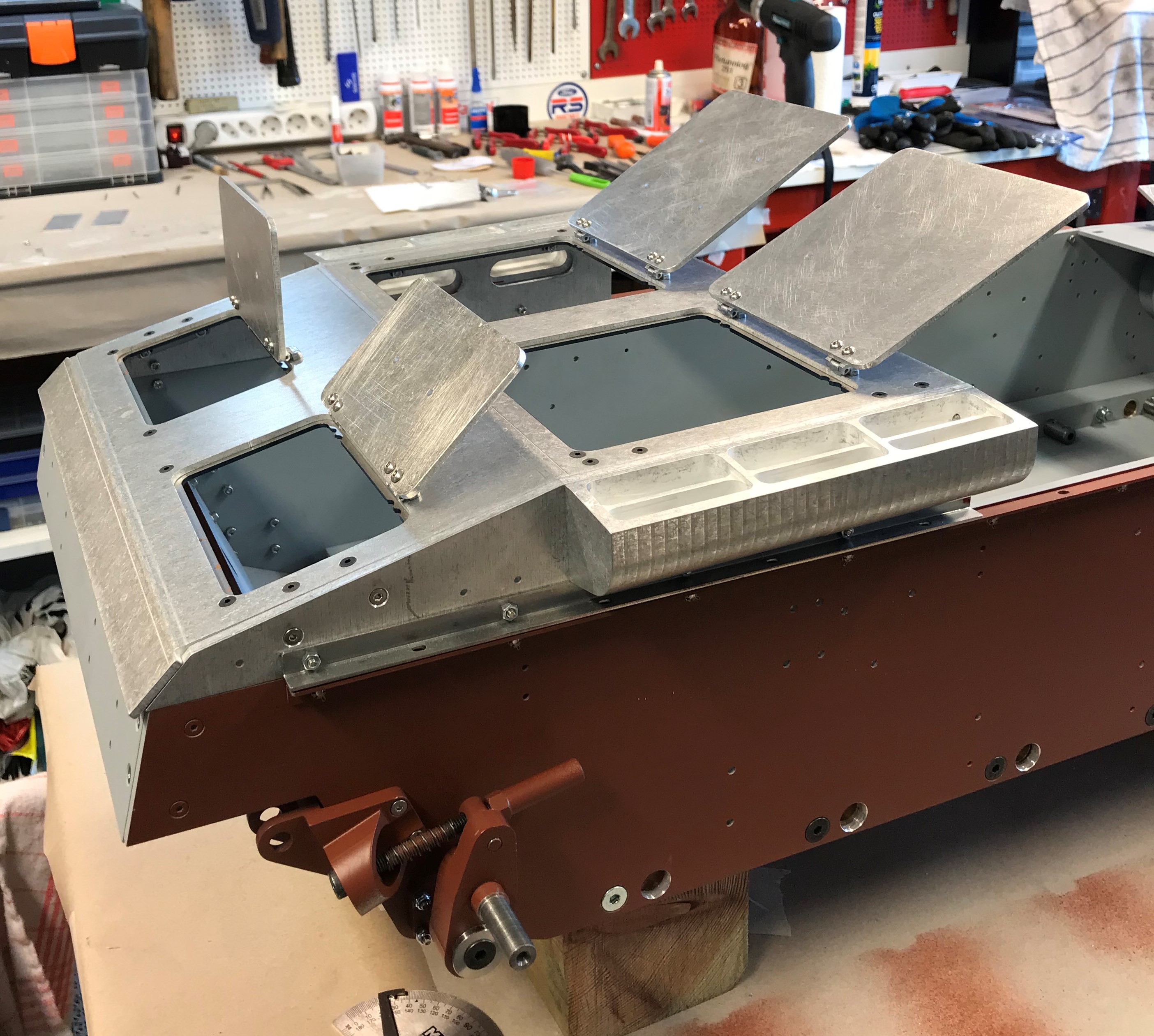 Har haft lite "torr körning " bara för att kolla så allt lirade. Nu nermontering för målning ,blir mycket detalj jobb o radio installation i höst.