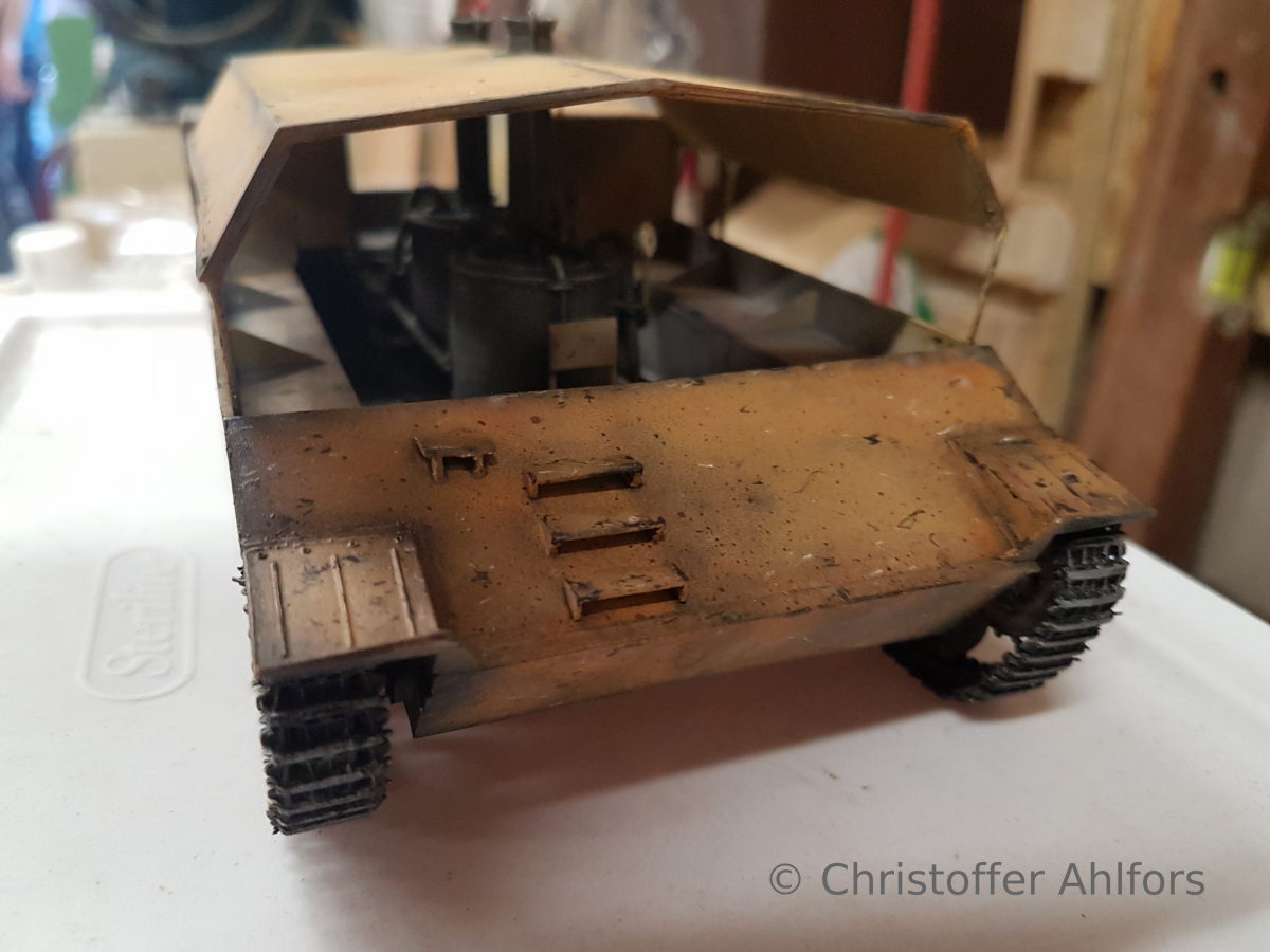 Mot slutet av kriget började man undersöka alternativa framdrivningssätt - jo faktiskt, det här är seriöst. En prototyp med ångmaskin, baserad på 38T. Modellen är i 1/35: